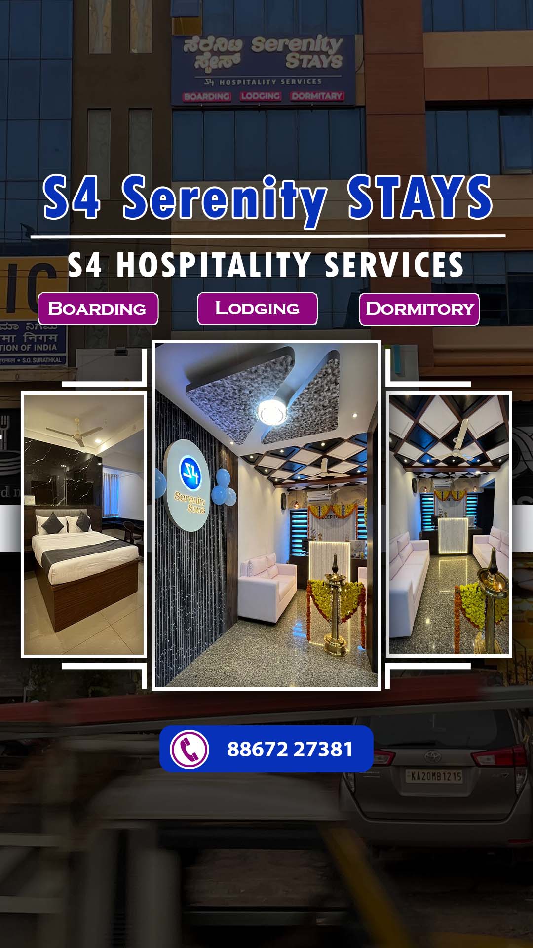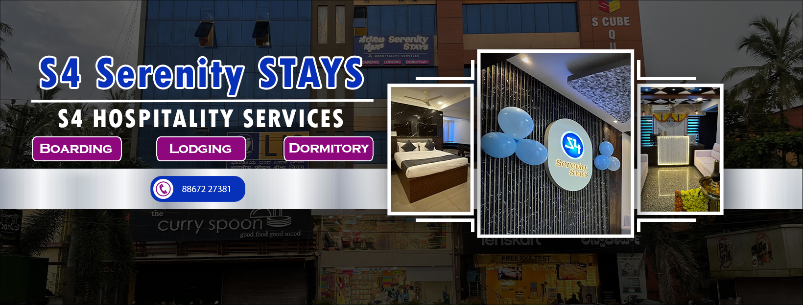 S4 Serenity STAYS is a venture of S4 Hospitality services that offers budgeted stay at Surathkal , Mangalore. We offer boarding, lodging and dormitory rooms, with each rooms designed in a unique style. The stay is located along the National Highway 66 making it easily accessible to the travelling enthusiast. We offer a wide range of services and amenities ensuring that our guests would have a pleasant stay and would consider visiting us again.